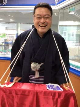 毎月第4金曜日午後2時10分~30分位の時間帯でFMいるかから「金曜講談会」を生放送しています。ご覧の様な格好でスタジオに現れます。ガラス越しにご覧になれますので、もしお時間がありましたら遊びにいらして下さい。函館山ロープウェイ山麓駅構内。6月24日の演目は『湯川小学校設立の顚末(Ⅱ)』です。